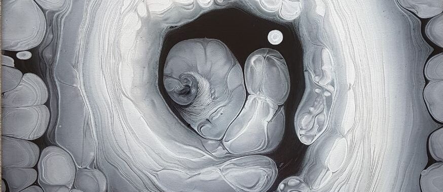 Divine Conception – 40 x 40 cm – Acrylic- DKR 1280 Beautiful conception protected by the light of the Creator. Even the fetus and umbilical cord appear in the womb. The egg appeared during drying! The, for some, incomprehensible in fluid art is that it is the paint and the energies via the artist’s hand movements […]